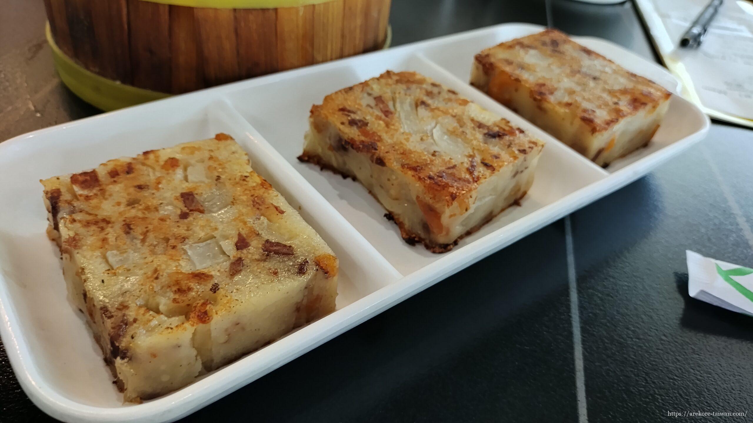 写真左の黒いのは豬血糕(Zhū xiě gāo=もち米を豚の血で固めたもの)。