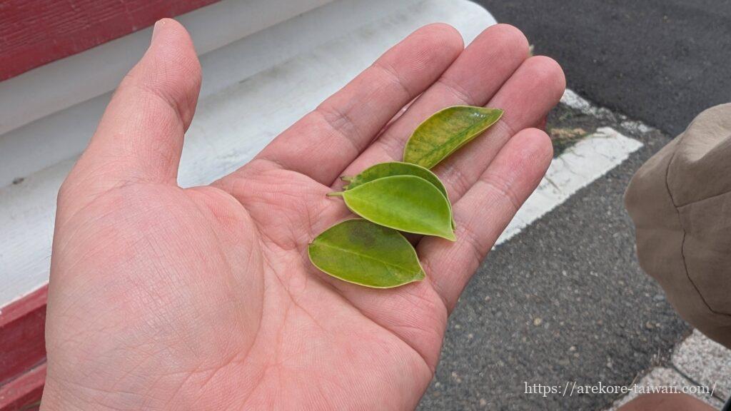 まず近くにあるガジュマルの葉を手に取ります。