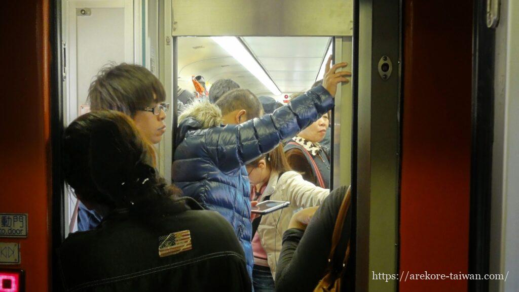地方へ向かう電車はこんな感じで通路に人がごった返すので