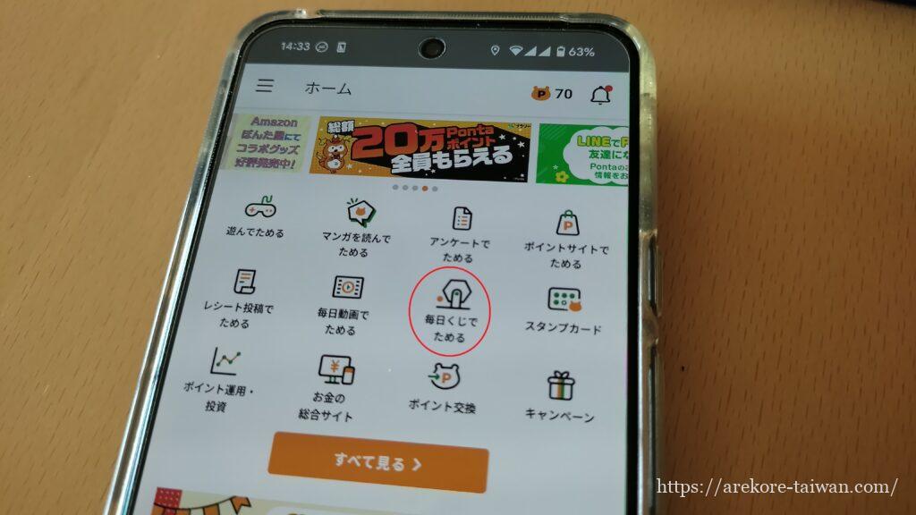 また、アプリホーム画面右手にPontaポイントチャレンジがあり