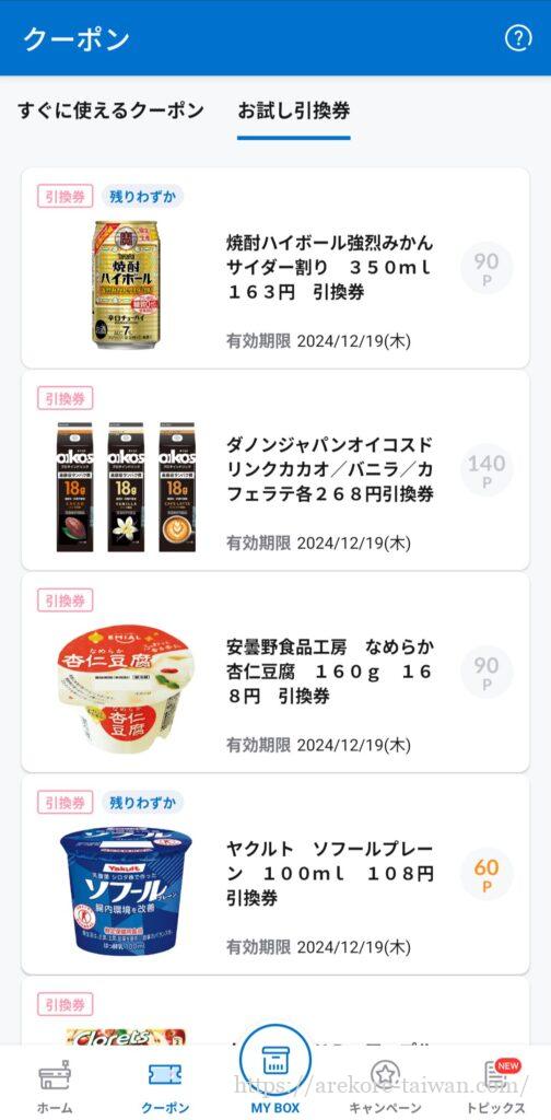 違うところは、クーポンとお試し引換券の2種類ある点で