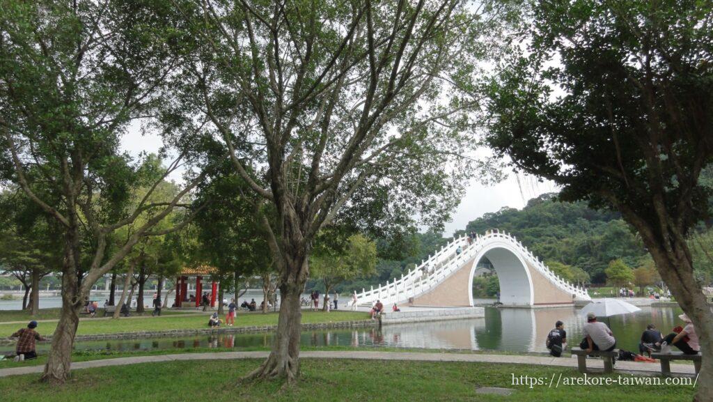 この公園の観光物と言えば、大きな湖に架けられたアーチ状の橋です。