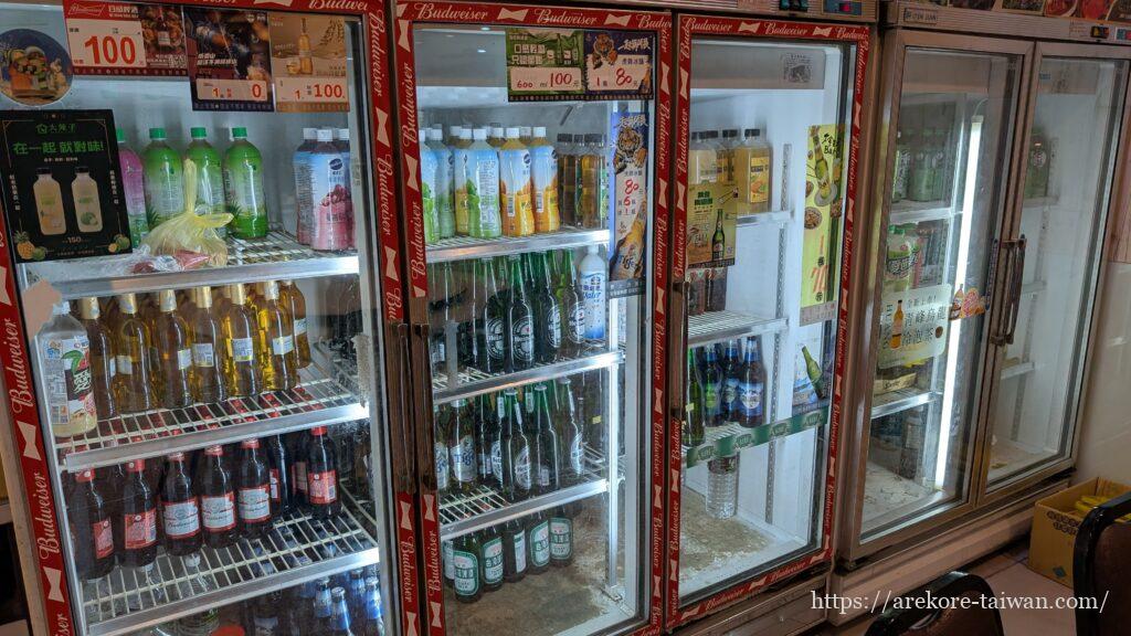 業務用の冷蔵庫に並べられたビールや飲み物の中から