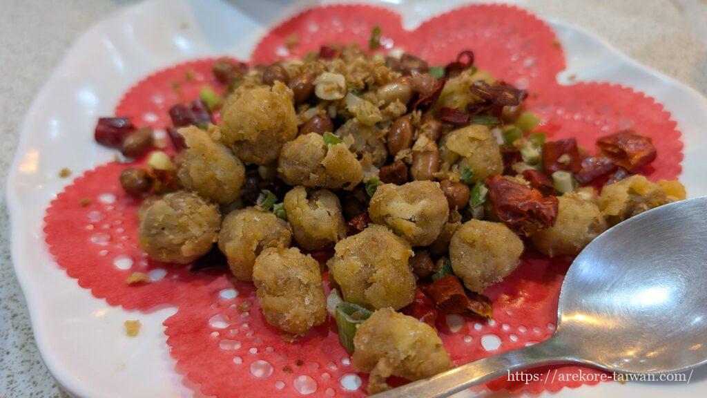 龍珠(lóngzhū=イカの口を揚げてピーナッツ唐辛子で和えたもの)
