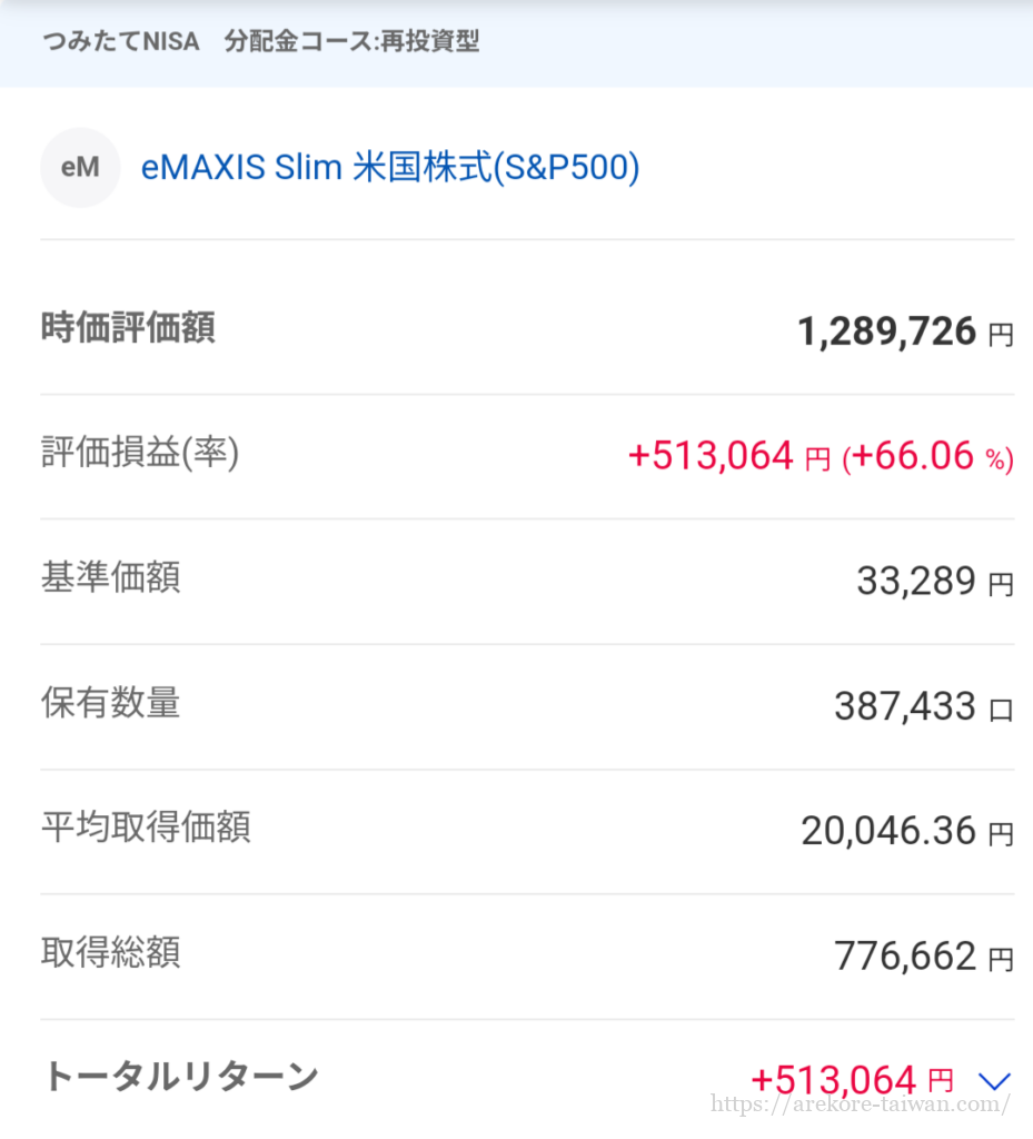 含み益が513,064円で、伸び率は約66%となりました。
