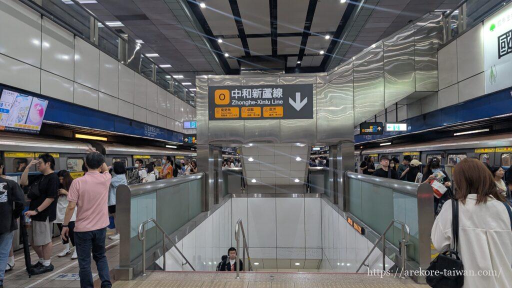オレンジ色のラインの中和新蘆線(Zhōng hé xīn lú xiàn)経由で
