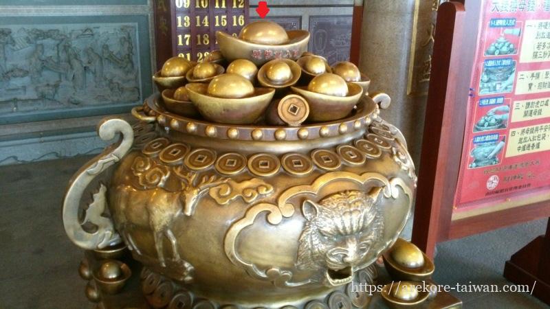 傍らに中華圏の富の象徴である元寶(Yuánbǎo)をかたどった