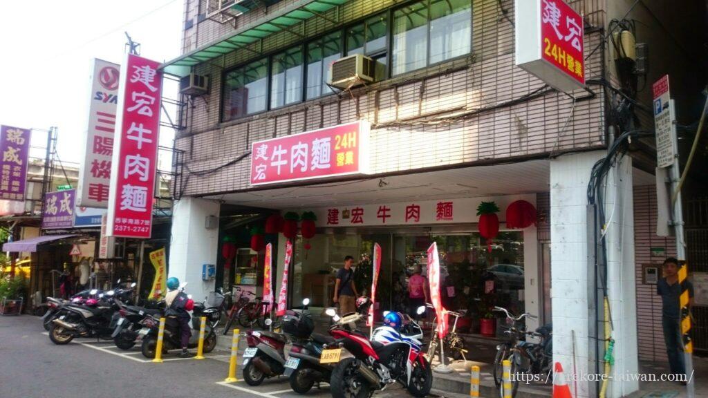 建宏牛肉麵は公園のすぐ側にある街の一角にあり、24時間営業。