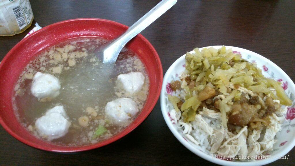 注文したのは雞肉飯(Jīròu fàn)と魚丸湯(yú wán tāng)で