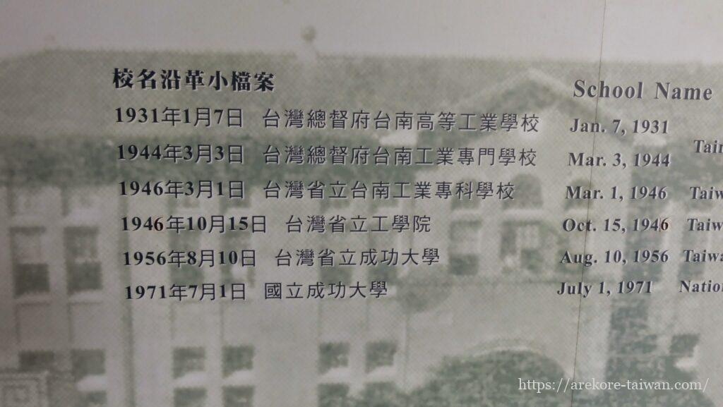 博物館の展示資料によると、成功大学は1931年に台南高等工業学校として開校し