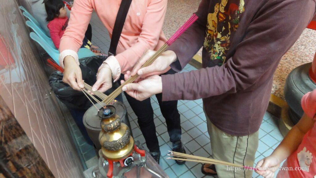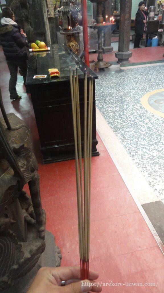 台湾のお線香は日本の3倍ぐらいの長さ。