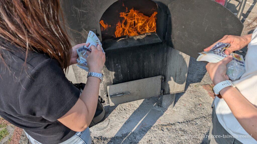 台湾では故人が極楽で生活に困らないようにお金を燃やして供養します。