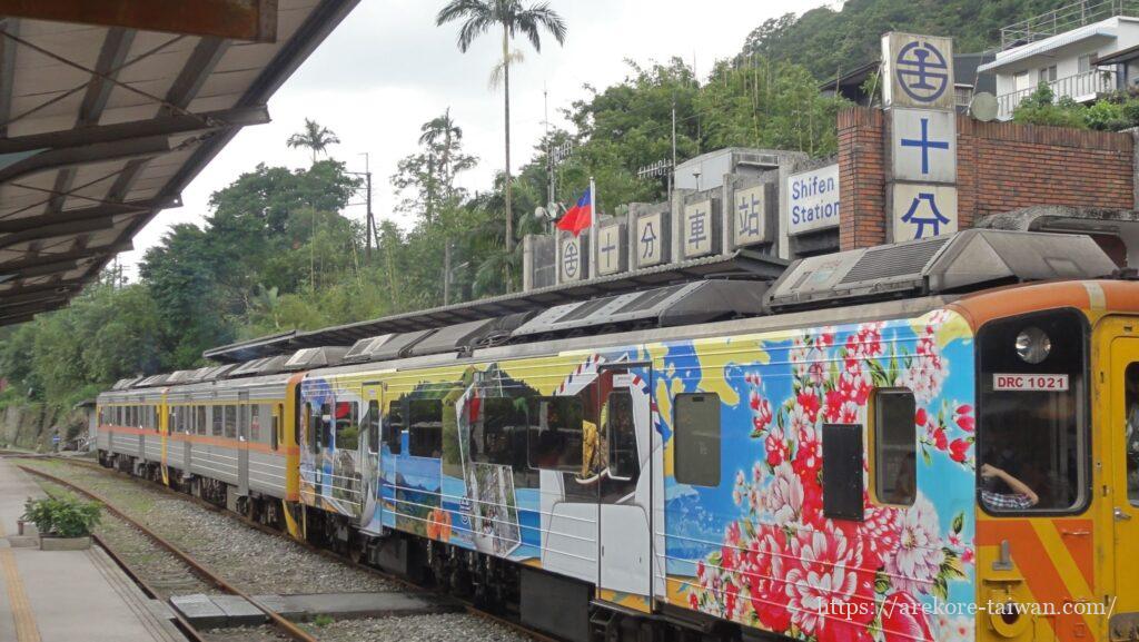 瑞芳(Ruì fāng)駅でローカル線の平渓線に乗り換え十分駅に到着。