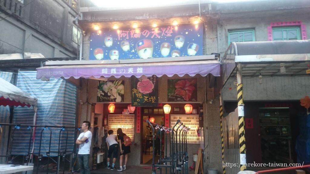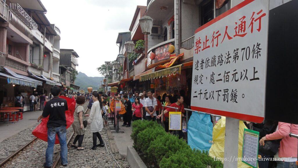駅の出口から線路沿いに十分老街のお店が連なっています。