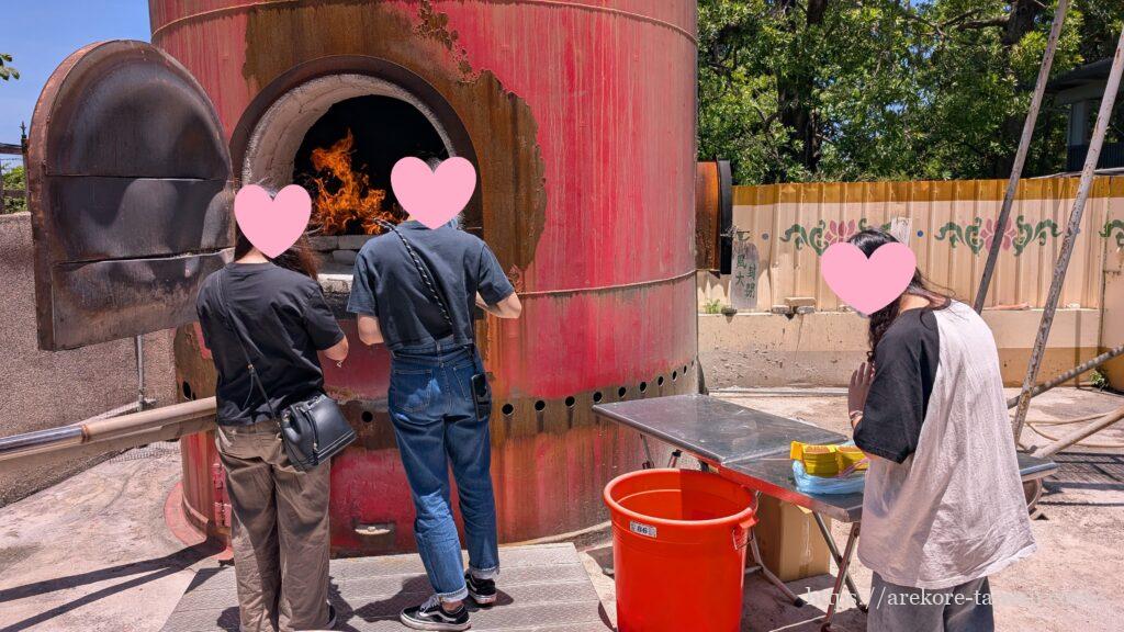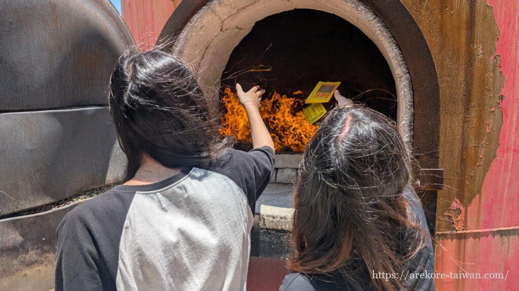 納骨堂の外にある焼却炉で燃やし故人に供します。