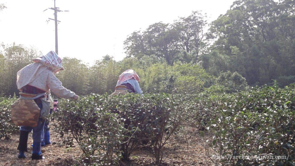 店の外にある広大な茶畑で茶摘みが行われていました。